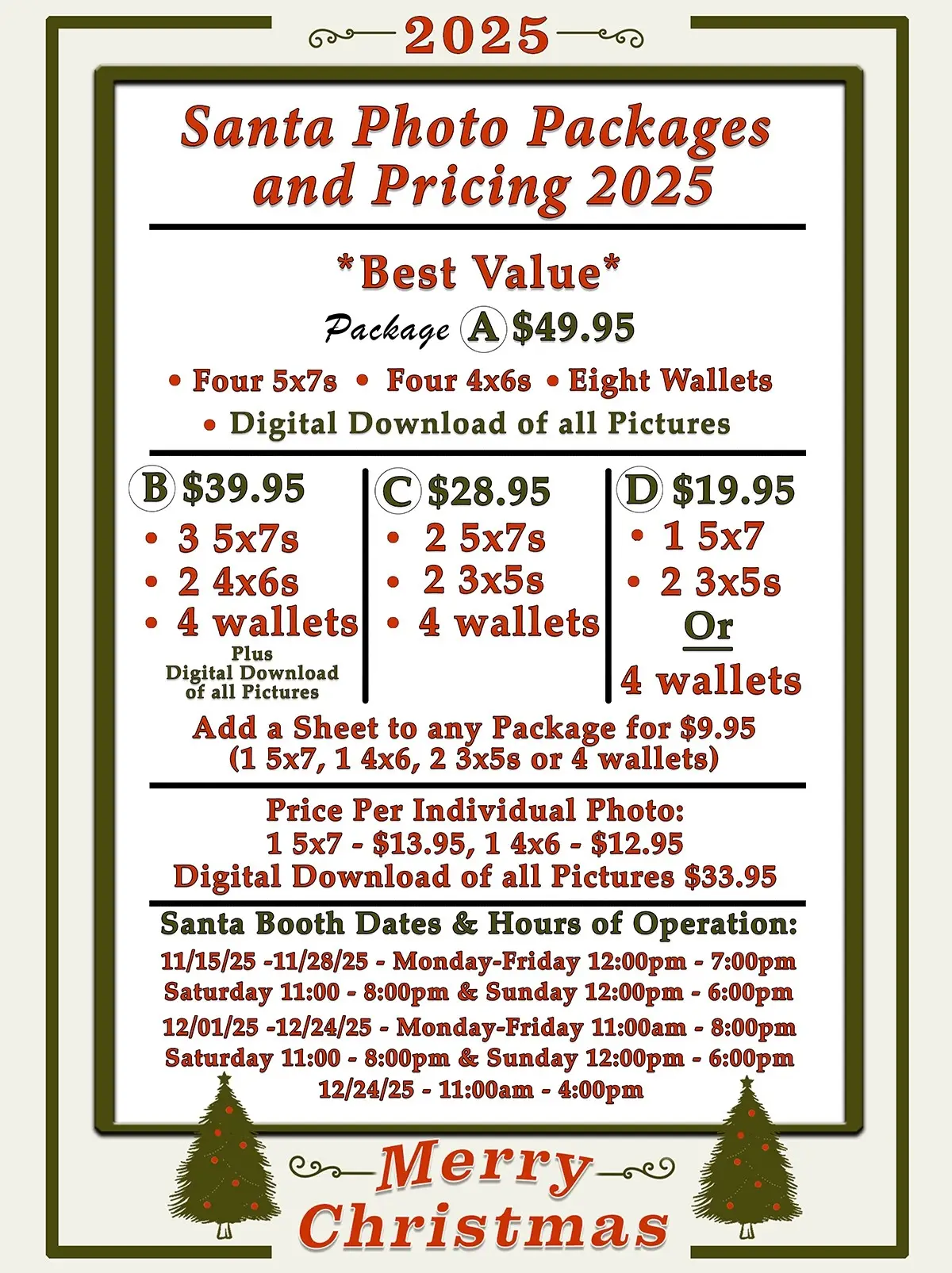 Come Visit Santa and create magical moments for the whole family! Santa Claus will be available all season for Holiday Photos!